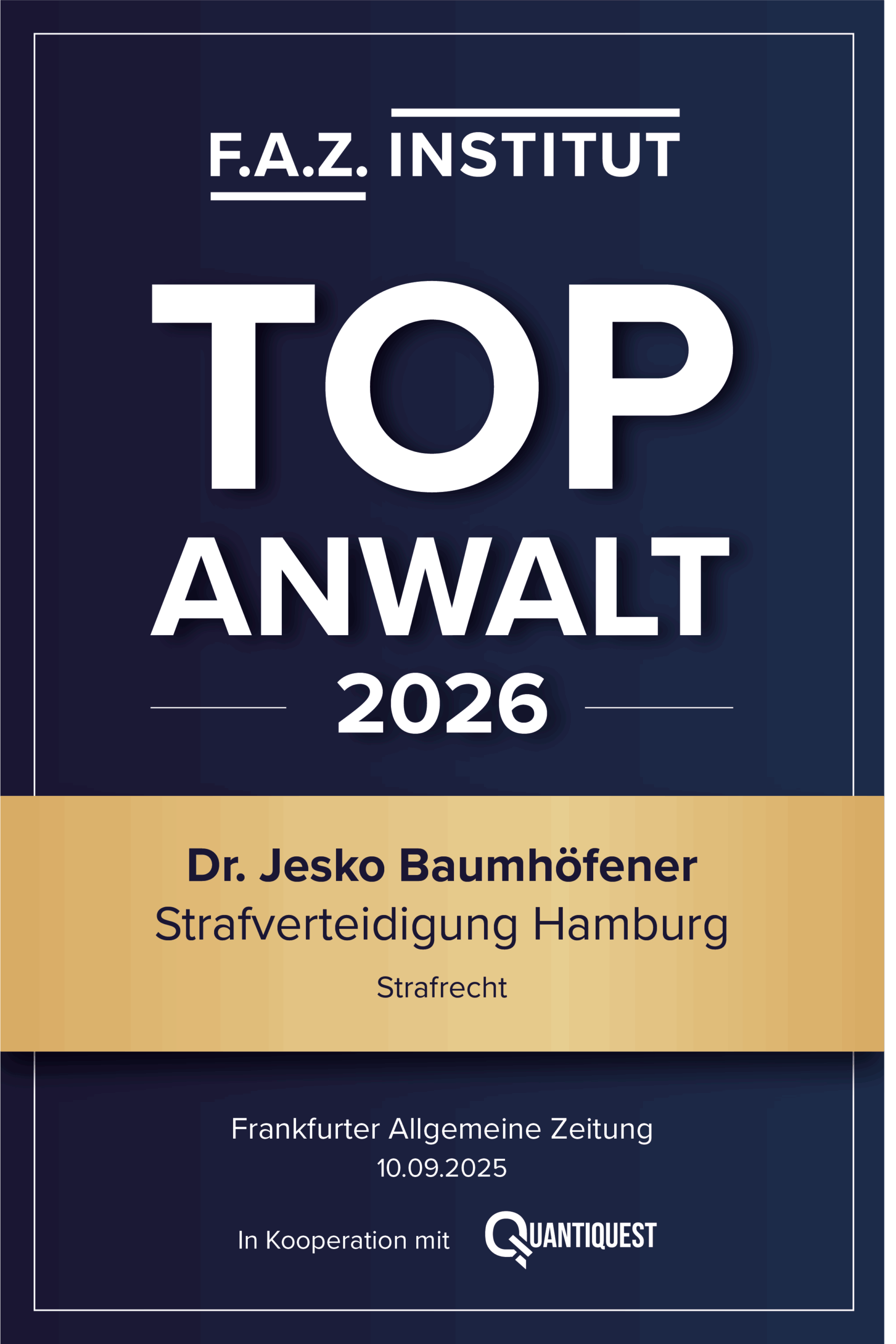 - Ausgezeichnete Expertise: Regelmäßig als führender Strafverteidiger empfohlen, u. a. von der FAZ als „Top-Anwalt für Strafrecht 2026“.